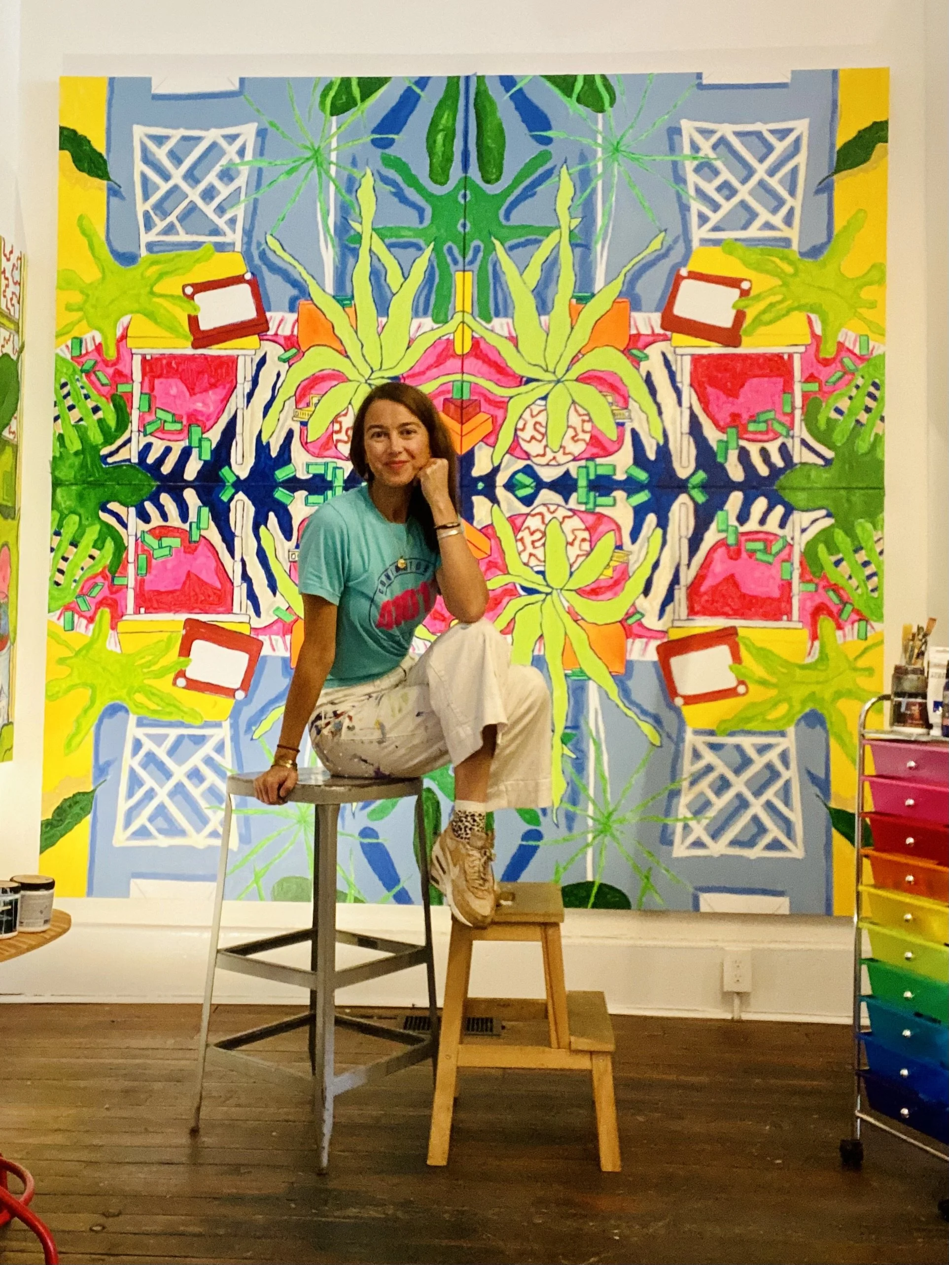 E. Palmer Wolff is female Kentucky artist who works across all medias. Her portfolio ranges from large scale abstract painting immersive installations. Wolff studied Fine Arts at the University of Kentucky. There she explored the themes of feminism and form through fiber arts.